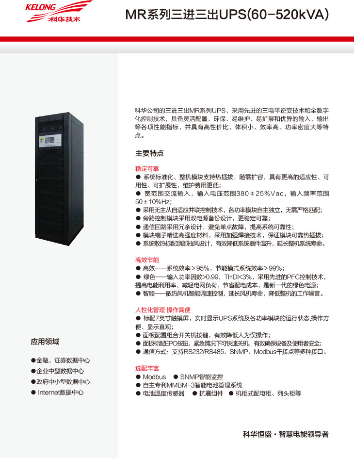 • 產(chǎn)品型號:MR系列三進三出UPS(60-520kVA)